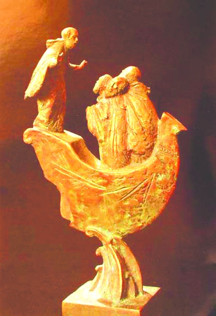 Тема плавания по морю, которая превращается в метафору плавания по морю житейскому, находит своё развитие в бронзовой скульптурной группе «Никола и корабельщики» (1994). Стоящий на корме маленького кораблика святитель Николай Чудотворец своими воздетыми к Богу руками как бы хочет обнять терпящих бедствие моряков.