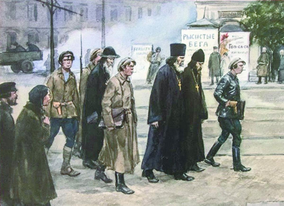 В Уфе убили другого члена Собора – Леонида Ницу. В Кронштадте за отпевание убитых матросов расстреляли протоиерея Григория Поспелова прямо с крестом в руках, который так и не смогли отнять у него.